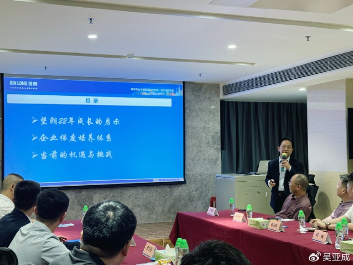 座谈会上,杨济雪总监首先发表了热情洋溢的欢迎辞,并围绕坚朗五金的发展实践,作了题为《中小企业高质量发展》的专题分享,系统阐述了公司在战略布局、技术创新、管理提升及市场开拓等方面的宝贵经验和卓越成效。