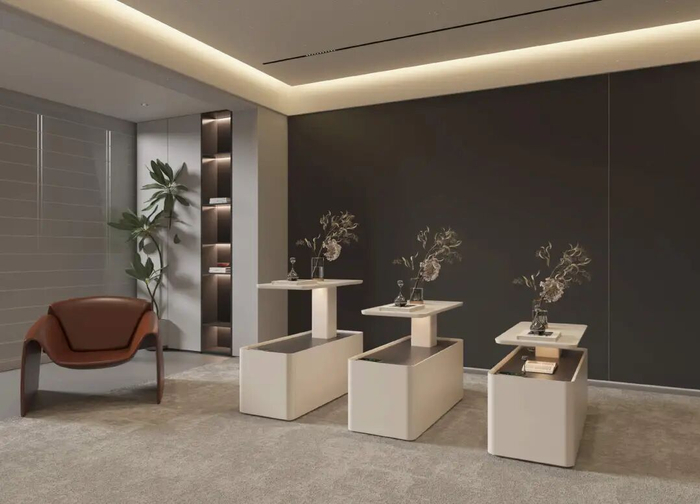 星锐世旗下星械师天团设计部经理陈可祥带来了全球首发的智能新品——“伴山”智能小家具。“伴山”的发布,直击传统边几柜、床头柜等产品的诸多痛点:高度固定、外观单一、充电线凌乱、场景单一。“伴山”集六大核心功能于一身:智能升降(600mm-880mm毫米级调节)、隐于无形一扫即亮(0.3毫米瞬时响应)、无线快充与有线接口兼备、超大储物空间、180度桌面旋转。其应用场景极为灵活,可在客厅作边几柜或背景柜,在卧室作床头柜,在休闲区打造私人角落,甚至适配房车空间。这款产品,真正实现了“一件家具适配全屋”。